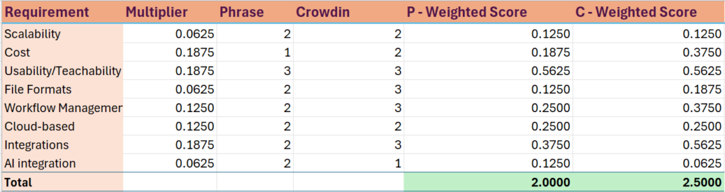 Crowdin and Phrase had similar, competitive features that beat the other evaluated options. However, some very important factors brought us to choose Crowdin as the best recommended option for this particular company, based on key aspects Phrase could not surpass such as integrations options and cost. Crowdin and Phrase both offered similar, competitive features that outperformed the other evaluated options. However, several critical factors led us to recommend Crowdin as the best choice for this particular company. Key aspects where Crowdin excelled over Phrase included integration options and cost.